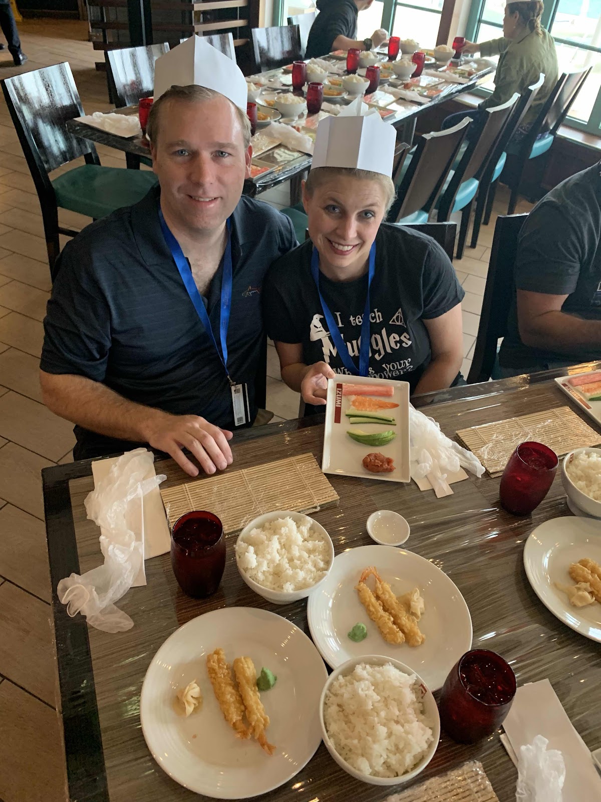 Today we had to report our passports at 8:20 so we ate in the dinning room and then worked out. We tried to walk the ship but it was to cold and windy! At 10:30 we reported to Izumi to learn how to make sushi and we got to eat what we made. We enjoyed learning about our next 4 stops at 2:15 and afterwards headed to the solarium by the pool until our picture viewing at 4:00. The pictures were amazing but extremely pricy so we may not purchase them. Dinner was in the main dining room at 6:00 and 9:00 was a tango dancing show.